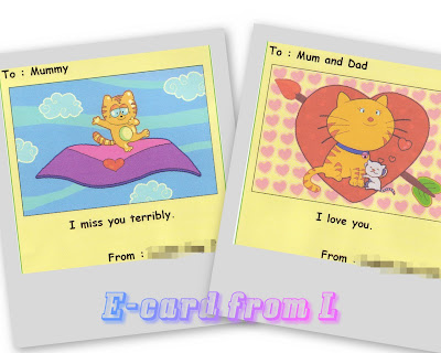 L has been attending the school computer class since school started. She has been telling me about the cards that she did with the computer and she was sad that I don't get to see it. When I showed her these, she was soooo happy!